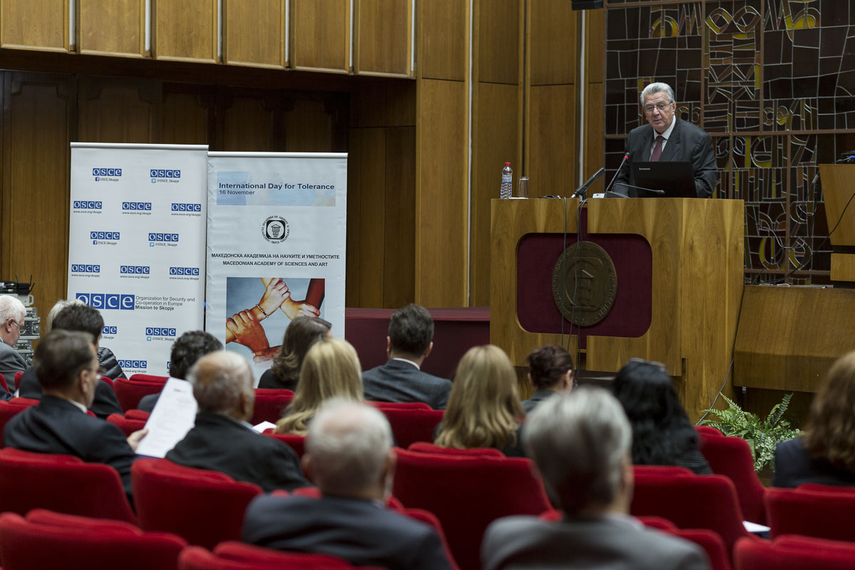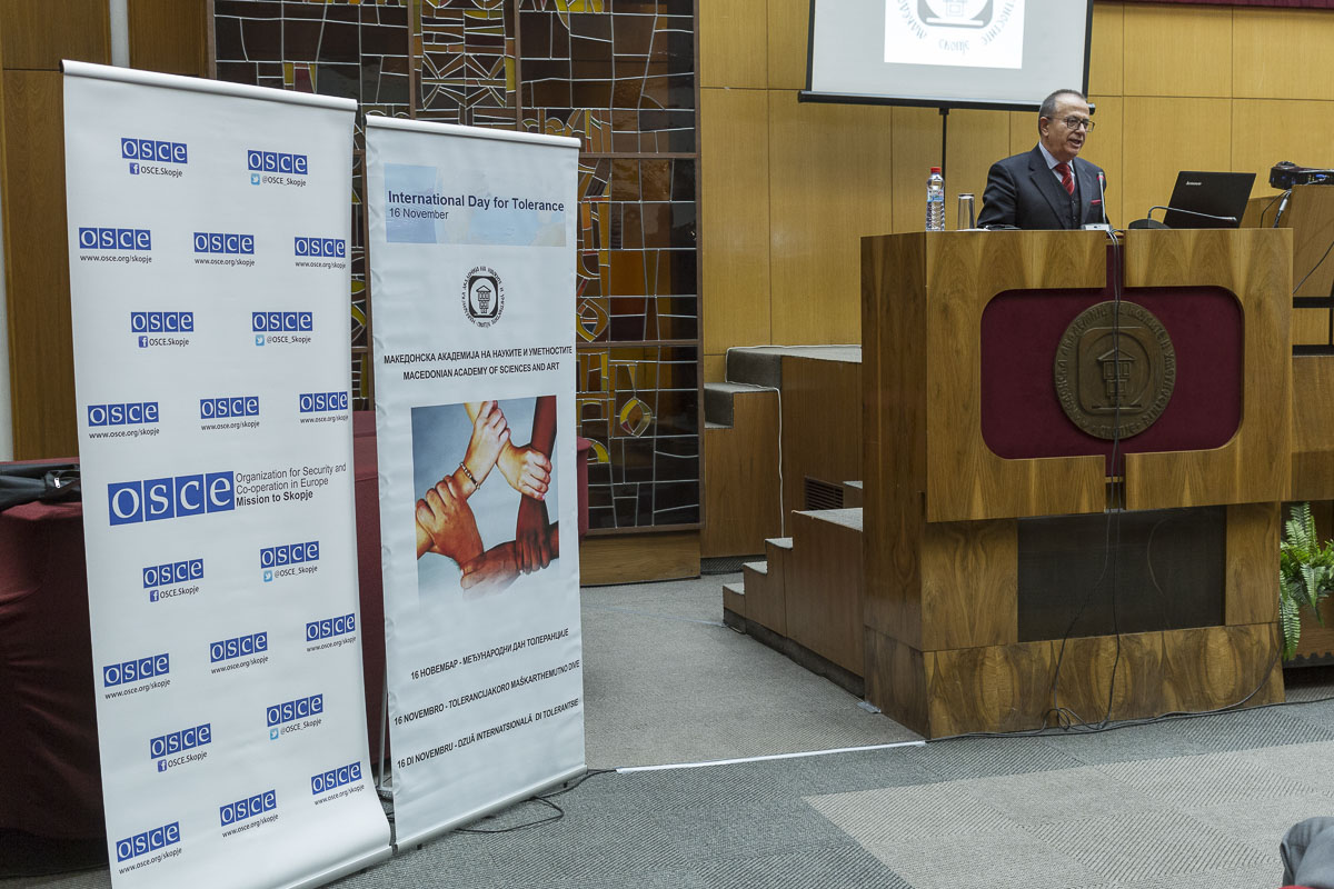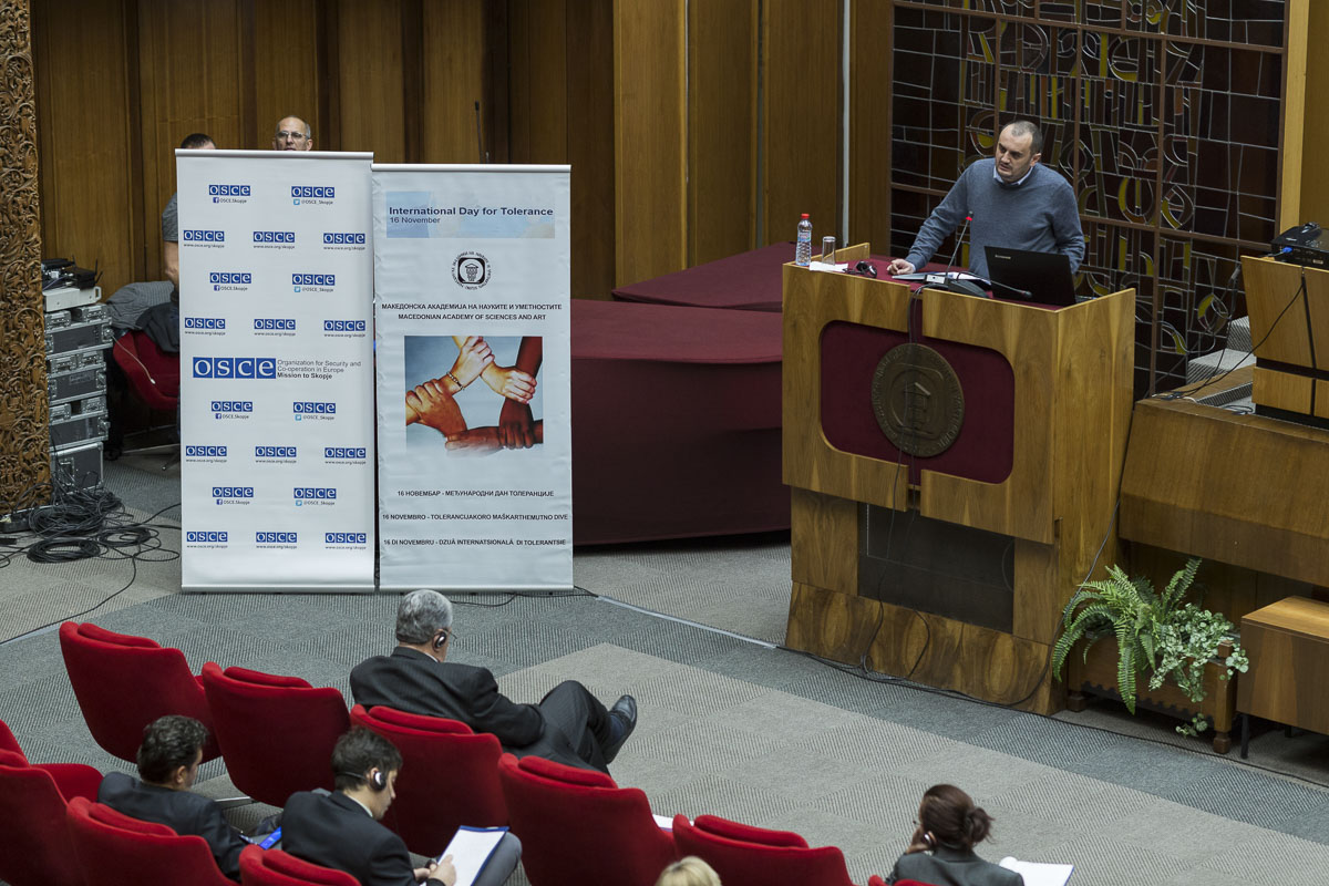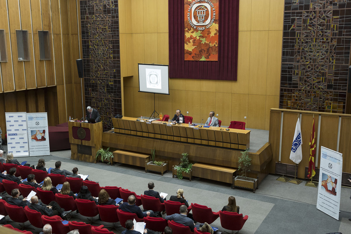 Центарот за стратегиски истражувања при Македонската академија на науките и уметностите (МАНУ), во координација со Мисијата на ОБСЕ во Скопје, од 2012 година организира годишни конференции за одбележување на Меѓународниот ден на толеранцијата – 16 ноември на теми поврзани со толеранцијата во општа смисла, а со особен фокус на институционалниот одговор кон криминалот од омраза и говорот на омраза, справување со стереотипите, како и дијалогот меѓу религиите. Ваквите конференции се покажаа како корисни за ширење на пораката за толеранција, а, во исто време, придонесоа и за воспоставување дијалог на високо ниво во земјата во поглед на механизмите за справување со криминалот од омраза, говорот на омраза и дискриминацијата. Како говорници беа вклучени претставници на Европската академија на науките и уметностите, ОДИХР, Академијата за судии и јавни обвинители, државни институции, експерти во полето на антидискриминацијата, како и други реномирани претставници на академската заедница.