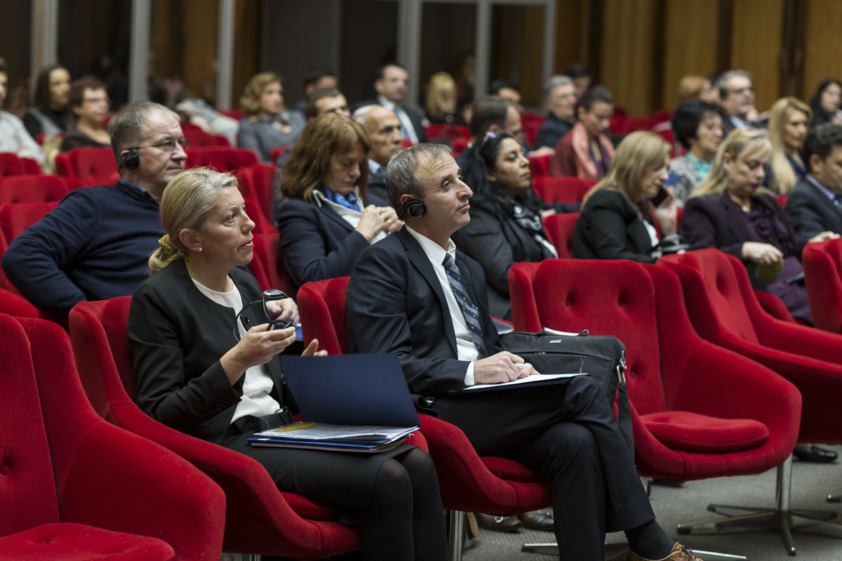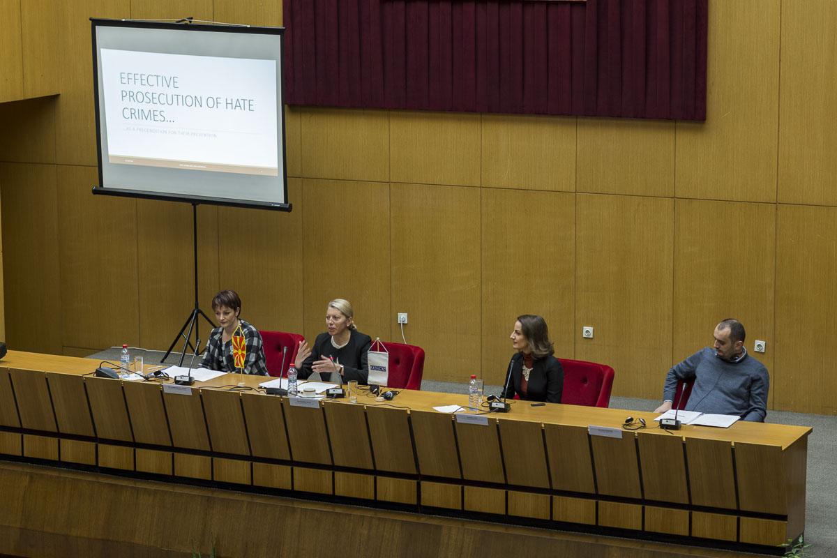 Главен говорник и модератор на првата работна сесија беше д-р Румиана Желева, од Институт за изучување на општествата и знаењето при Бугарската академија на науките, Софија (ИИОЗ – БАН) со свое излагање на тема: Јазик, дијалог, толеранција: современи предизвици и перспективи. Потоа свое излагање имаа и д-р Беса Арифи од Правниот факултет при Универзитетот на Југоисточна Европа, Тетово, на тема: Ефективно процесирање на криминалот од омраза како предуслов за негова превенција, м-р Лилјана Пецова–Илиеска од Дирекцијата за заштита на лични податоци, Скопје на тема: (Само)регулаторни модели за одговорно објавување на коментари на интернет vis-à-vis случајот Delfi против Естонија и д-р Ервис Мартани од Универзитетот „Марин Барлети“, Тирана, на тема: Интеркултурен дијалог, образование и политики како алатки за справување со нетолеранцијата.