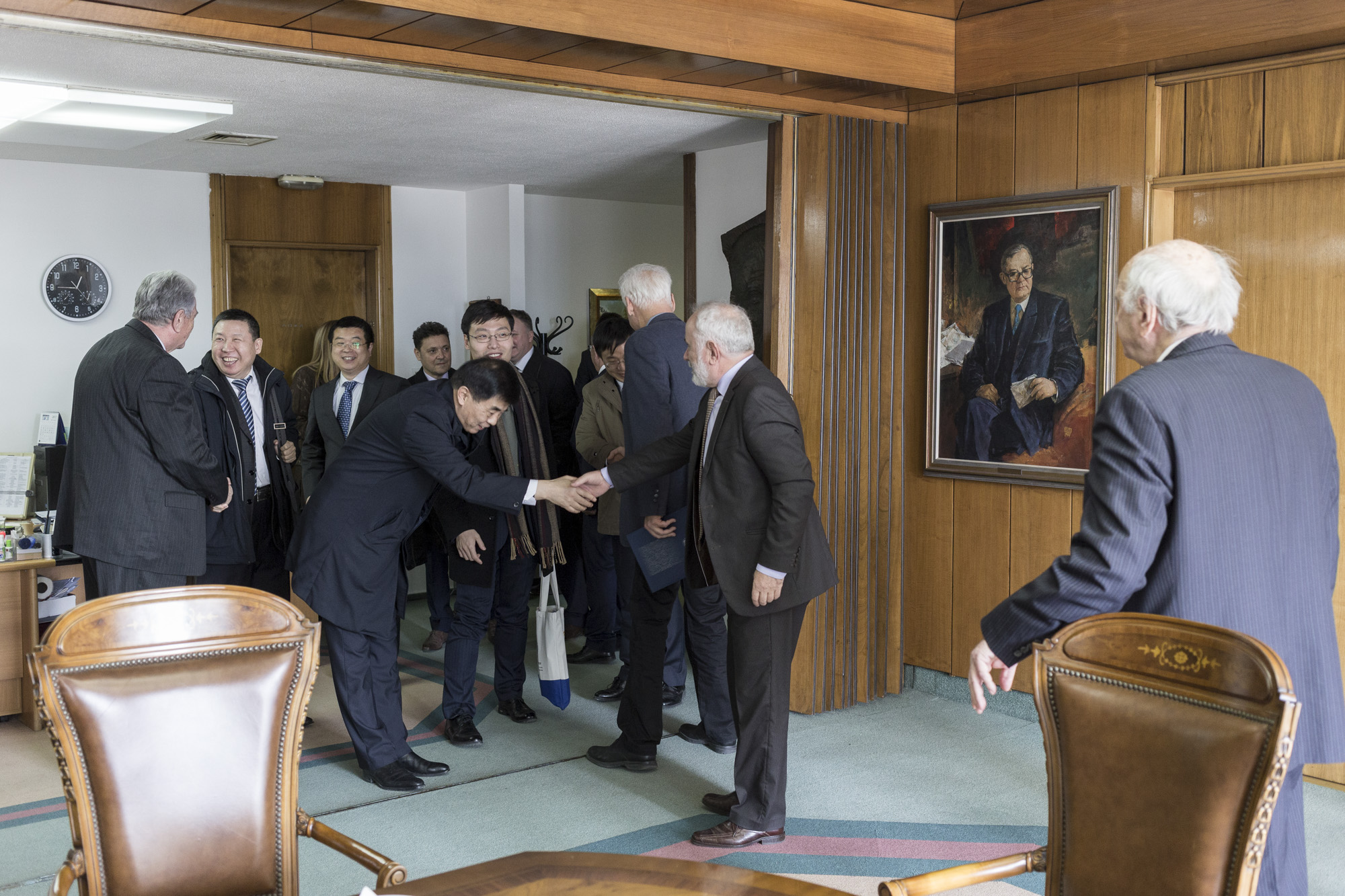 Во рамки на официјалната посета на Република Македонија од страна на членови на Кинеската академија за општествени науки и нејзиниот Институт за Европски студии од 25 до 28 февруари 2017 година, чиј домаќин е Институтот за геостратешки истражувања и надворешна политика при Министерството за надворешни работи, на 27 февруари беше остварена посета на Македонската академија на науките и уметностите од делегација од членови на Кинеската академија за општествени науки, во состав:
