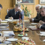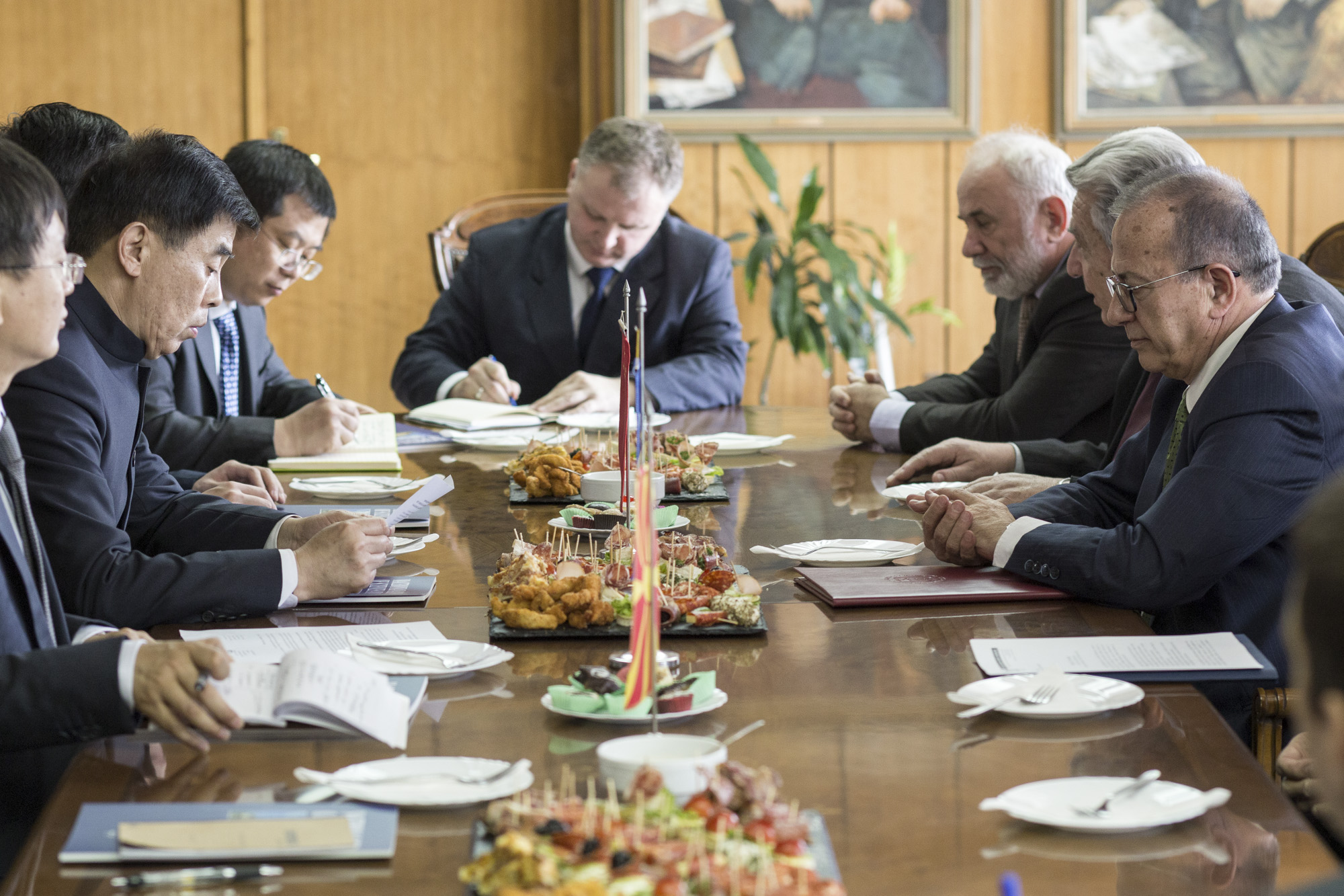 Делегацијата беше пречекана од Претседателот на МАНУ акад. Таки Фити, потпретседателот акад. Владо Матевски, секретарот акад. Леонид Грчев, раководителот на Центарот за страегиски истражувања акад. Владо Камбовски, како и академиците Георги Старделов и Гоце Петрески.