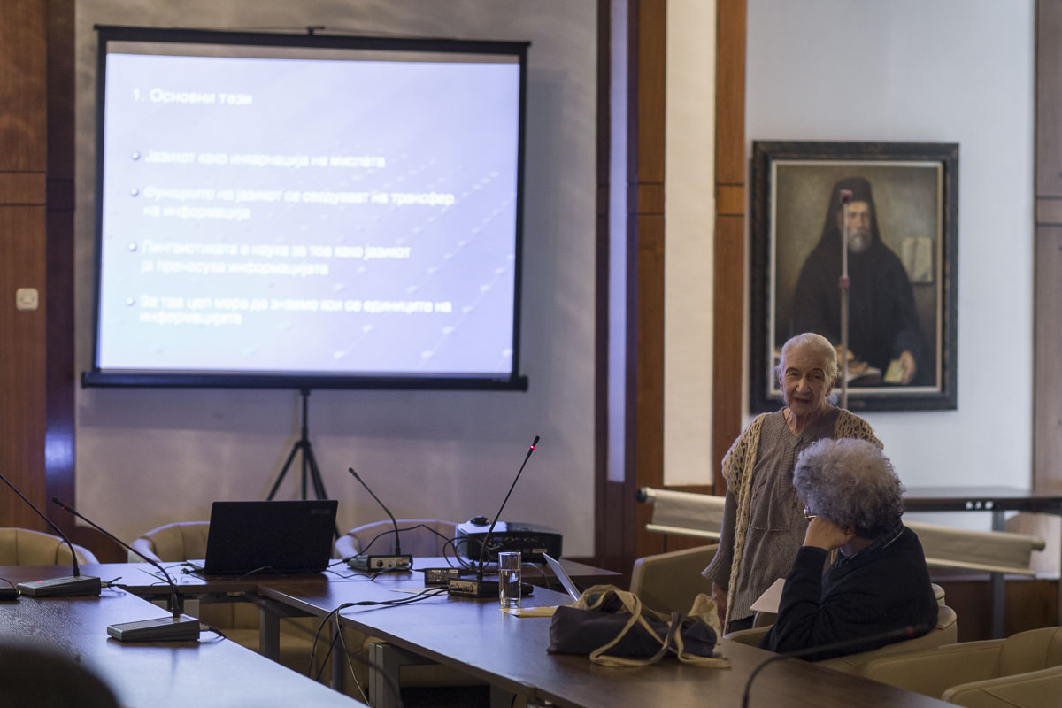 Во рамките на Месечните лингвистички средби: COLLOQUIA LINGUISTICA на Истражувачкиот центар за ареална лингвистика, акад. Зузана Тополињска одржа предавање на тема: Организација на семантичката и формалната структура на јазикот.